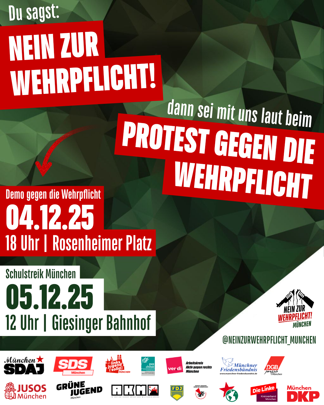 Antikriegstag 2025 - vom Stachus ins EineWeltHaus 1 Sep 2025 - 17:00 https://www.muenchner-friedensbuendnis.de/Antikriegstag-Muenchen-2025